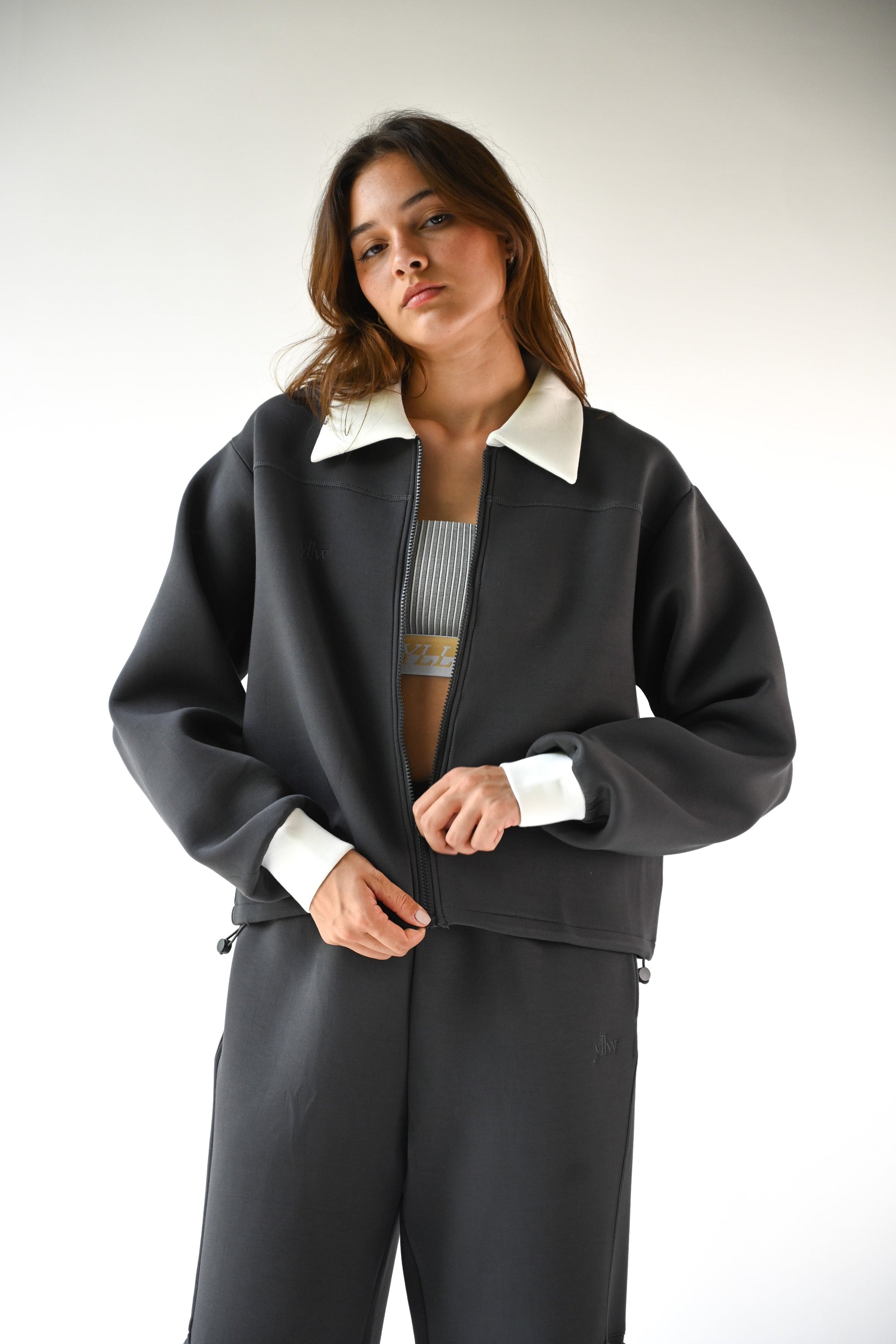 Fitted with our soft, stretchy Knit Neoprene fabric, the Kasey Jacket is a long sleeve performance jacket featuring a soft collared neckline and an adjustable cinching waistline. Wears well alone, or with any of our Knit Neoprene bottoms.