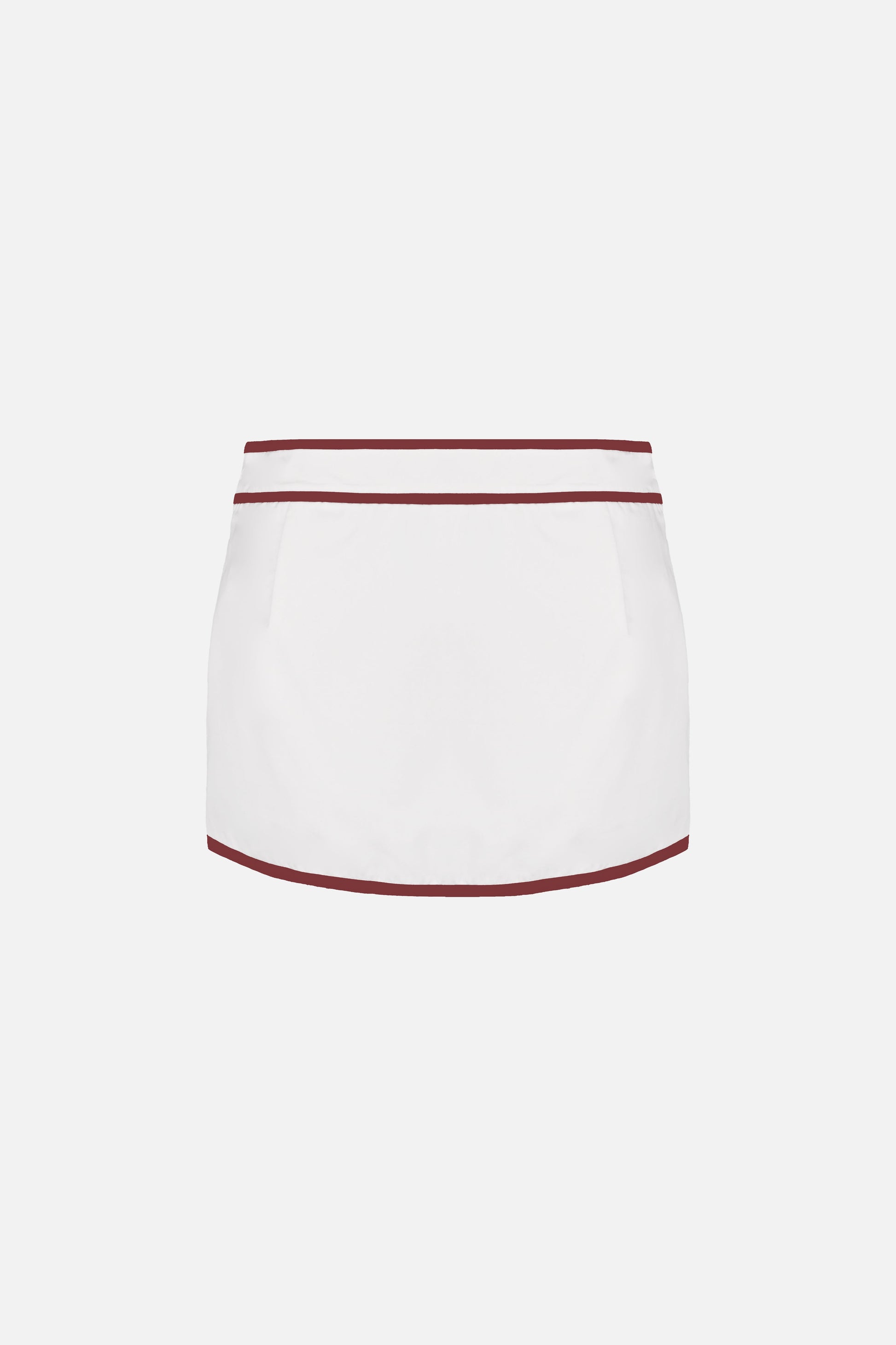 Minimal yet magnetic, the Ossie Skort is a canvas of clean edges lined in burgundy piping. The streamline silhouette and abbreviated length offer a flattering balance with the Mindy Jacket's volume.