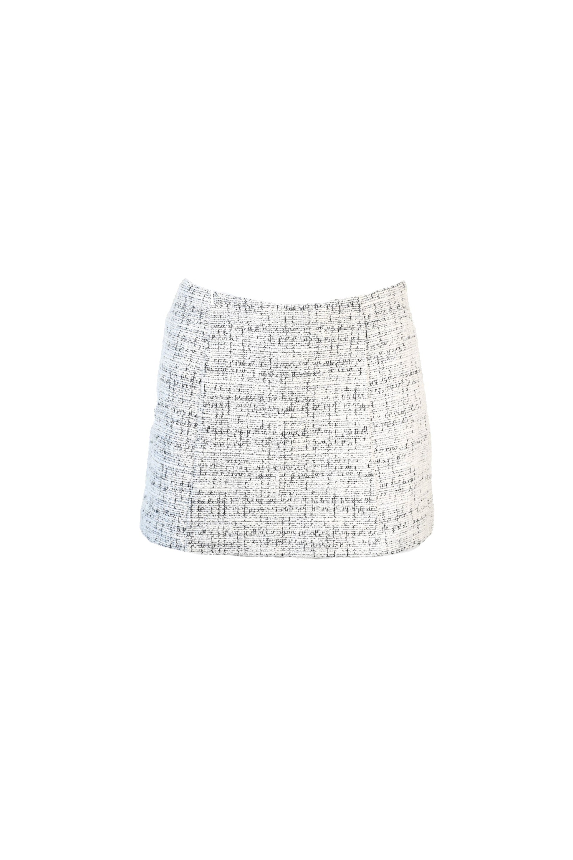 The St. John Skort is the perfect mid-rise mini skort to style as a transitional piece. The skort is cut from a lightweight tweed with colors of cream and black.