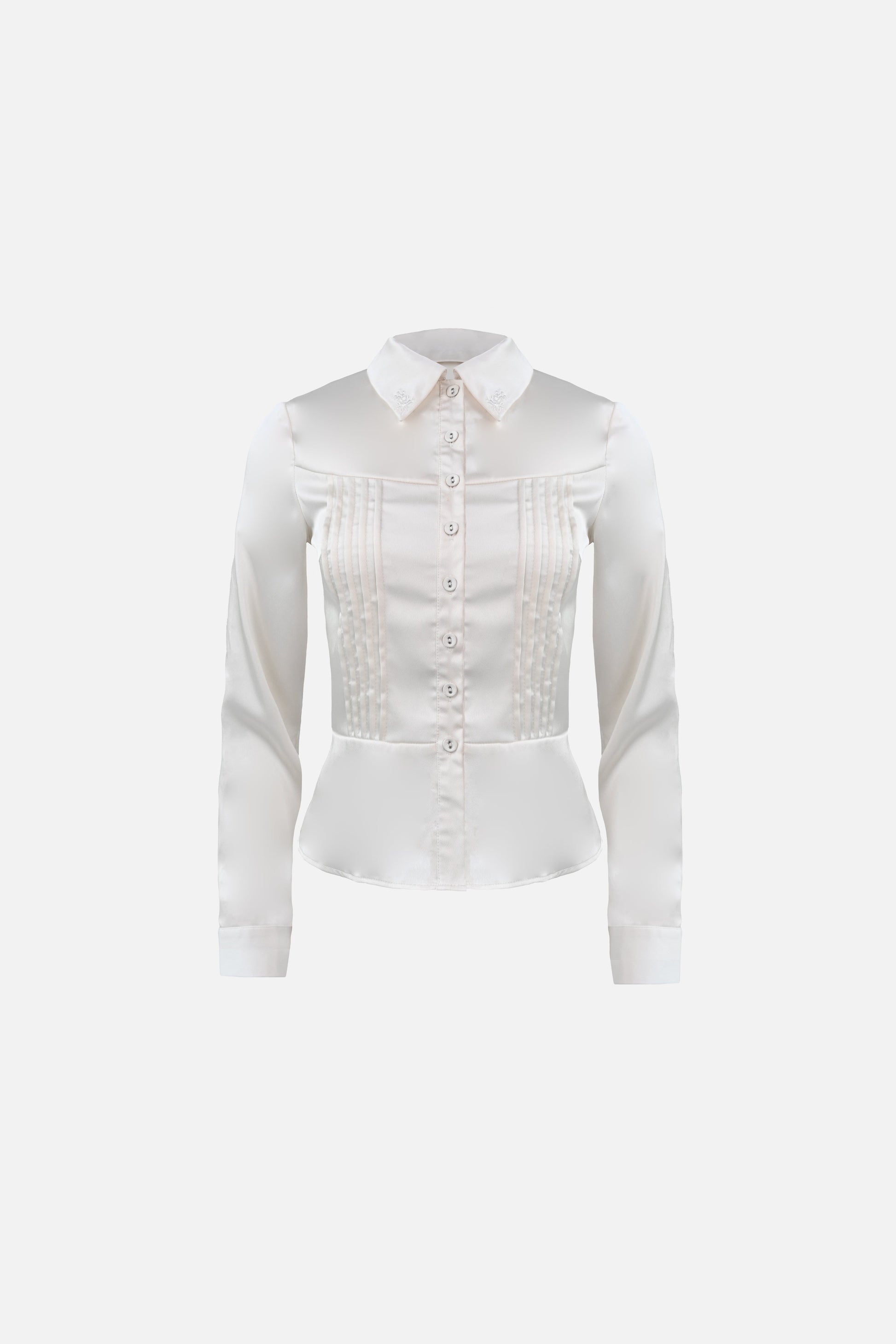 With intentional tailoring, the Yara Shirt features delicate pintuck pleats framing the bodice against the radiant Tencel™ fabric. The sharp collar is finished with floral embroidery, creating a softness to this foundational piece.